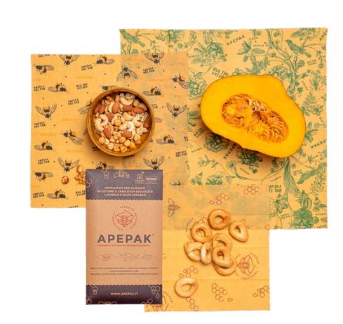 Apepak Trio: involucro naturale, ecologico e bio per alimenti in cotone e cera d'api
