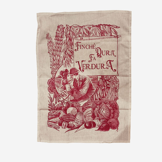 Strofinaccio da cucina in cotone naturale serigrafato artigianalmente "Finché dura fa verdura"